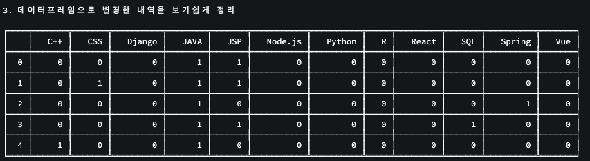 print('3. 데이터프레임으로 변경한 내역을 보기쉽게 정리 \n')
