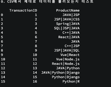 print('0. CSV에서 제대로 데이터를 불러오는지 테스트','\n')