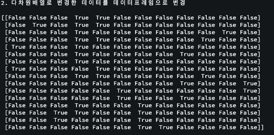 print('2. 다차원배열로 변경한 데이터를 데이터프레임으로 변경 \n')