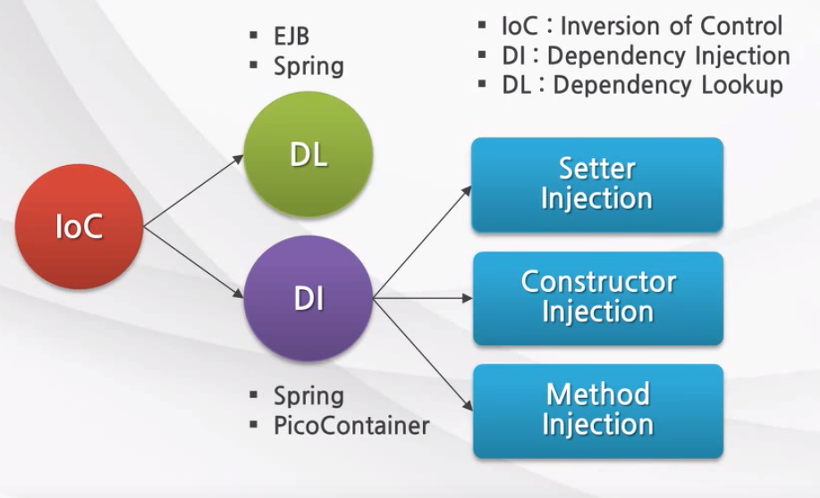 객체의 생명주기를 스프링 컨테이너가 관리하는 IoC 개념이 있기 때문에, DL(Dependency Lookup) 과 DI(Dependency Injection)이 가능해진다.