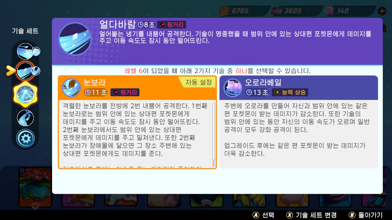 기본적인 콤보는 눈사태를 써서, 벽을 만든 후 눈보라로 데미지를 주고 상대 포켓몬이 얼어서 스턴이 걸리면
